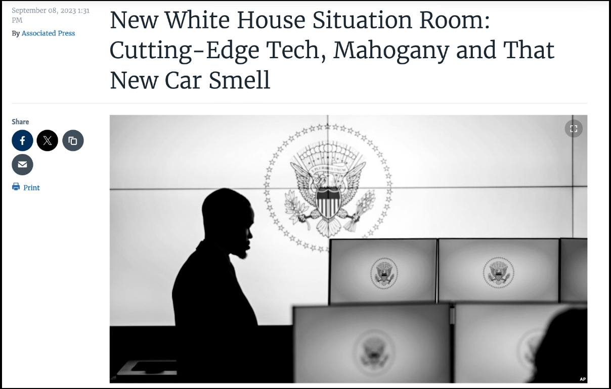 At the highest, most elite social and political levels, alternative electronic environments such as the “Situation Room” in the White House, which received a $50 million update in 2023, offer not only a symbolic national affirmation of second order illiteracy, but the kind of wired cocoon in which our leading modern illiterates thrive, a hi-tech hall of mirrors designed to flatter their insatiable narcissism and sense of self-importance.